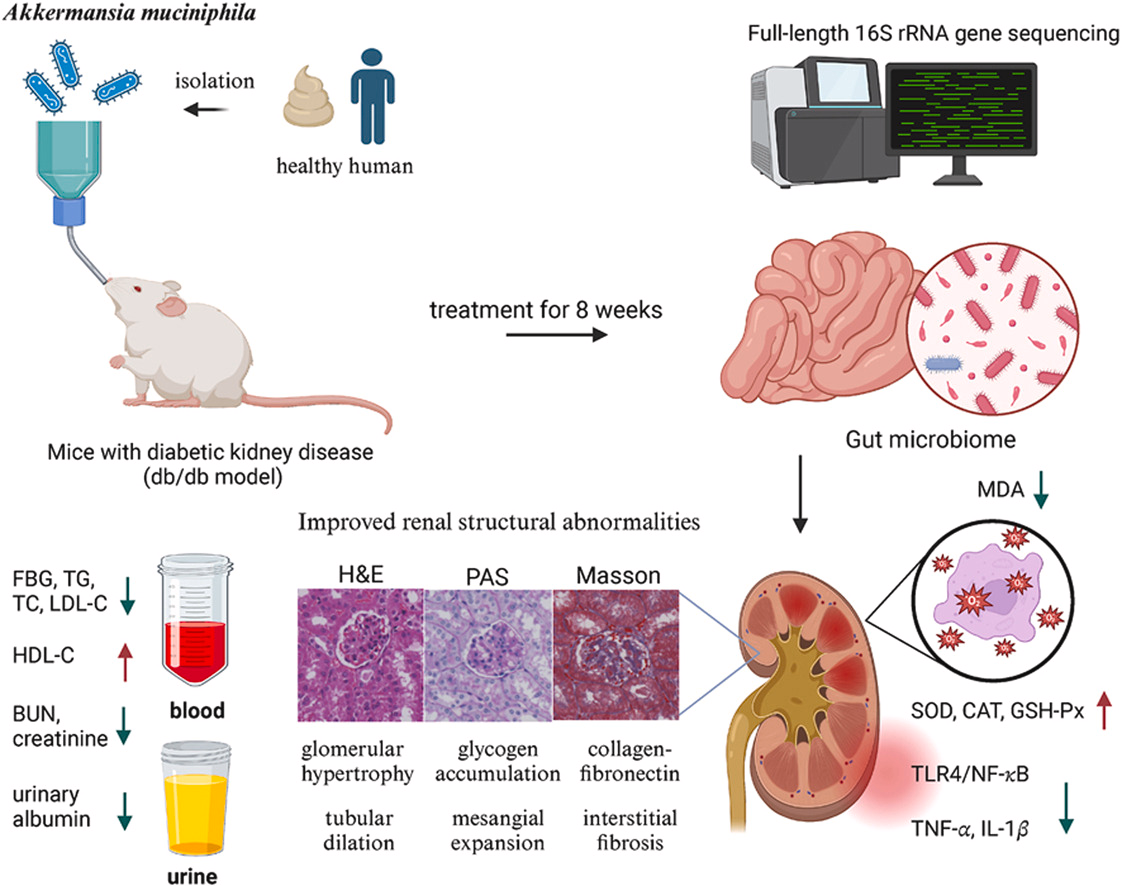 这一机制在南昌大学聂少平团队的糖尿病肾病模型中得到验证:AKK菌干预后,db/db小鼠的肠道屏障完整性显著改善,血浆中内毒素水平下降,进而减轻了肾脏炎症反应。